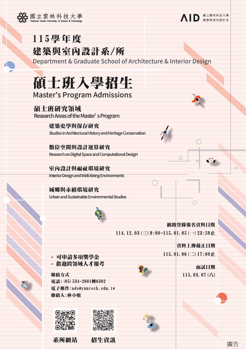 雲科大建築系【115學年度碩士班招生考試】招生中